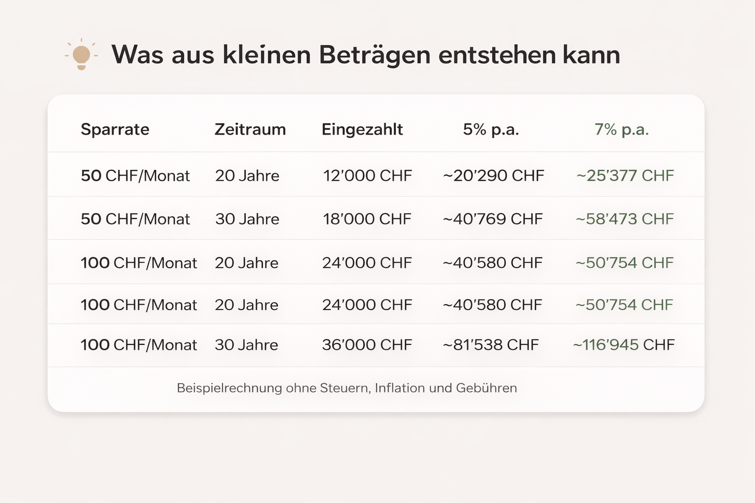 Was kann aus 50–100 CHF pro Monat werden