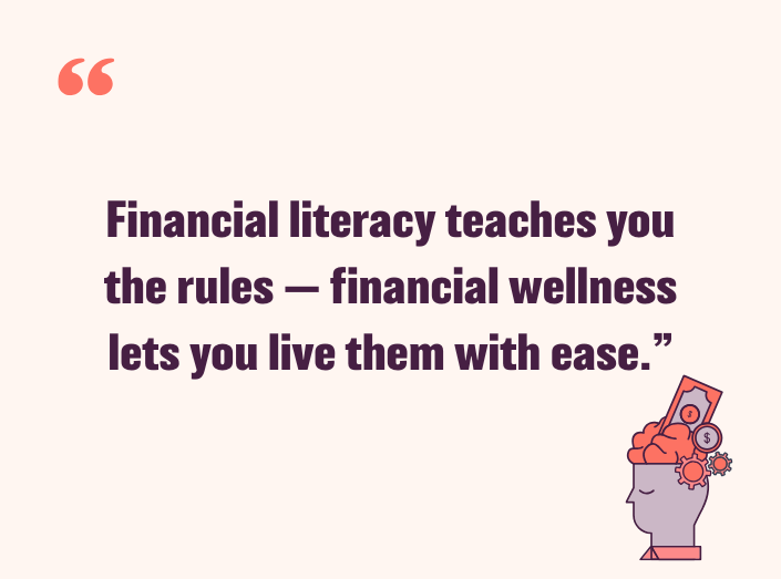 Financial literacy and financial wellness are two sides of the same coin. Literacy gives you the tools to understand money. Wellness helps you use those tools to create balance and security.